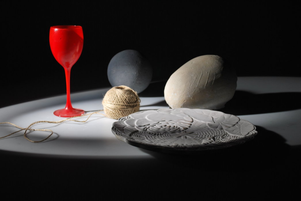 Örneğin bu benim okul stüdyosundaki malzemelerle oluşturduğum bir kompozisyonu, farklı ışık etkileriyle gördüğüm bir çalışmam oldu. Burada renkli ışık yok. Fotoğraflarda beyaz ışığın  yumuşatılmış, gölgeleri keskinleştirilmiş, kontrastı arttırılmış ya da azaltılmış etkilerini görebiliyoruz. Bunlar için petek, tas, softbox, huni vs malzeme kullanılabiliyor.